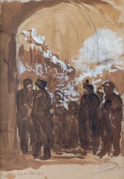 Sepia gouache