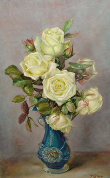 Still-life of roses in a blue vase