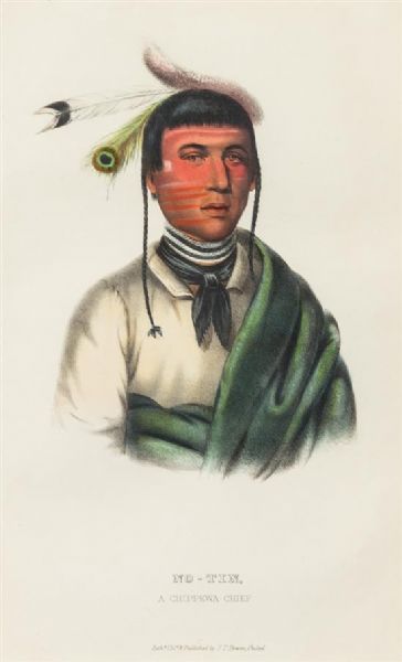 | A group of four portraits and one hunting scene from History of the Indian Tribes of North America, c. 1836-1844. | |