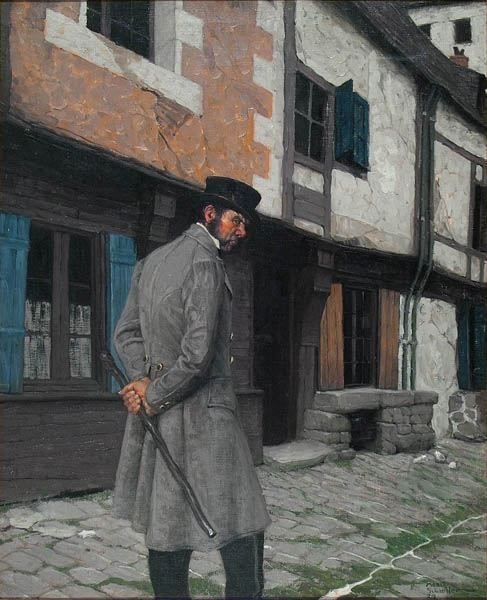 Man walking down French alleyway.