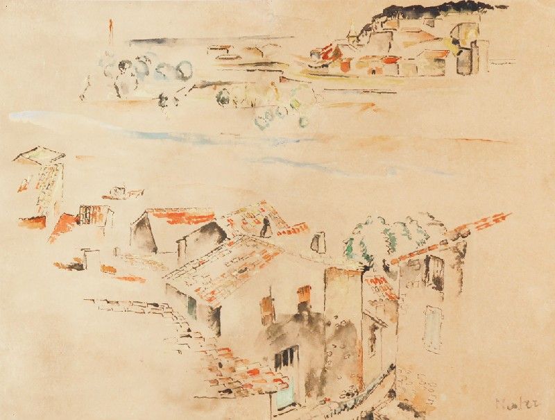 Widok na miasteczko na południu Francji Pejzaż z drzewami