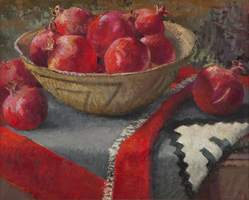Pomegranates with Navajo basket and blanket