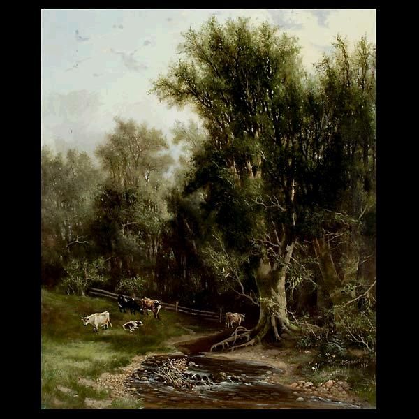 Cows grazing by a Stream