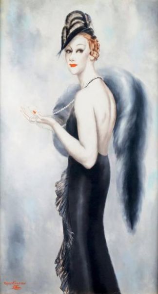 ÉLÉGANTE AU SAUTOIR DE PERLES