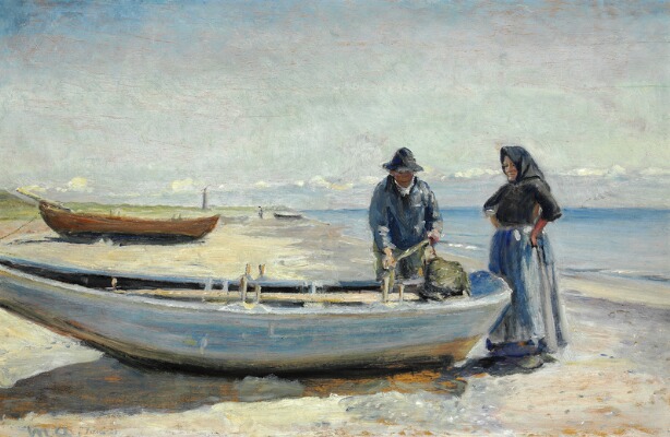 A fisherman and his wife at their boat on Skagen Sønderstrand