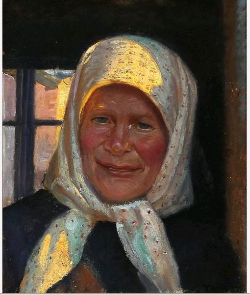 A woman with a floral headscarf, Skagen