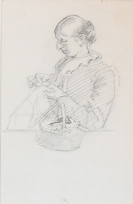 Anna Ancher sewing at the table