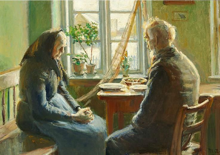 | Bordbøn. The grace. A fisherman and his wife are saying grace before the meal. | |