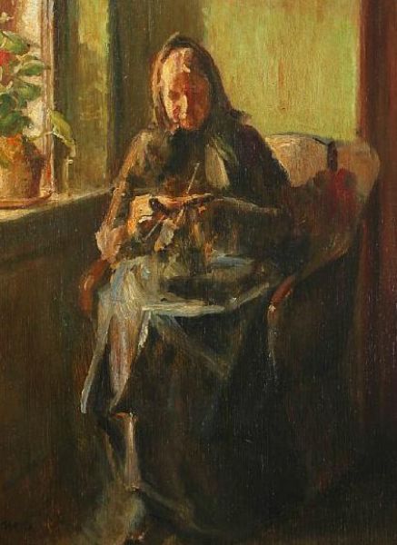 Interior with knitting woman