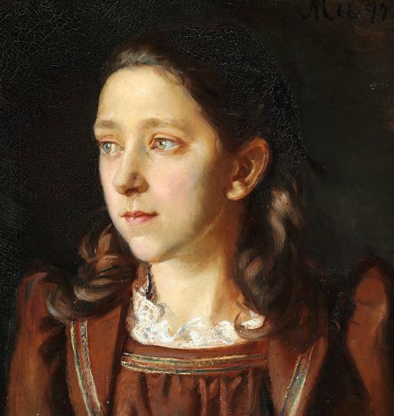 Portrait of Ida Holst with curly brown hair in a brown dress.