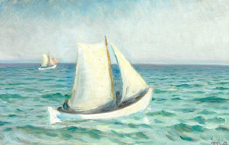White boats on the sea off the coast of Skagen