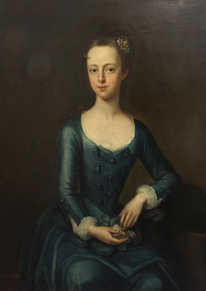 | Portrait of a lady seated in a blue dress with flowers in her hair | |