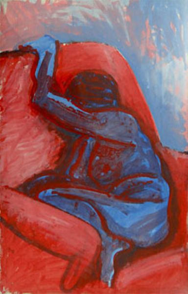 Seated Lady, Blue on Red