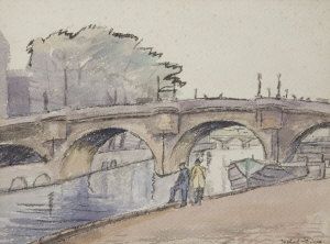 Two Men standing below a Bridge, Paris