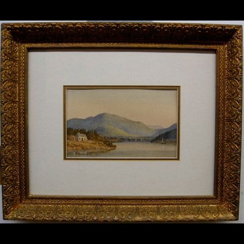 LAKESIDE HOMESTEAD AND SAILBOAT; SAILING IN THE MIST
