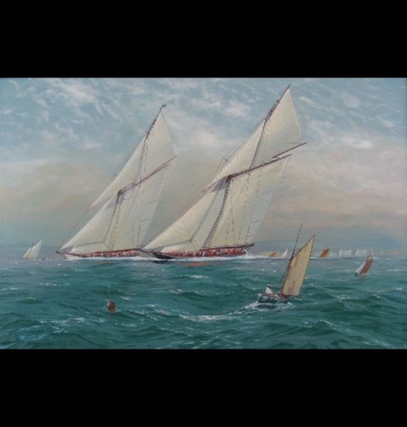 Astra leading Britannia around the Needles off the Isle of Wight