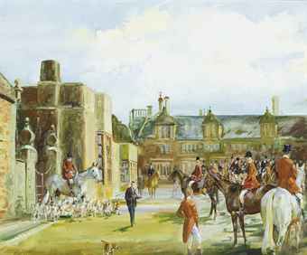 | The meet of the Pytchley hunt at Ashby Manor, the home of Lord Wimborn | |