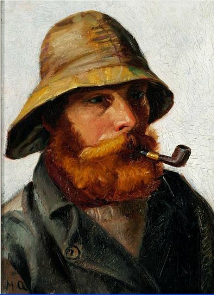 | Red-bearded fisherman with a yellow sou'wester smoking a pipe | |
