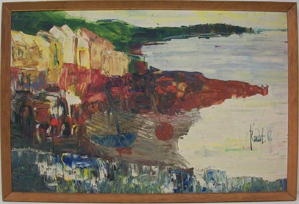 | a seascape with a Cornish harbour, the artist is better known for his illustrations of aircraft | |