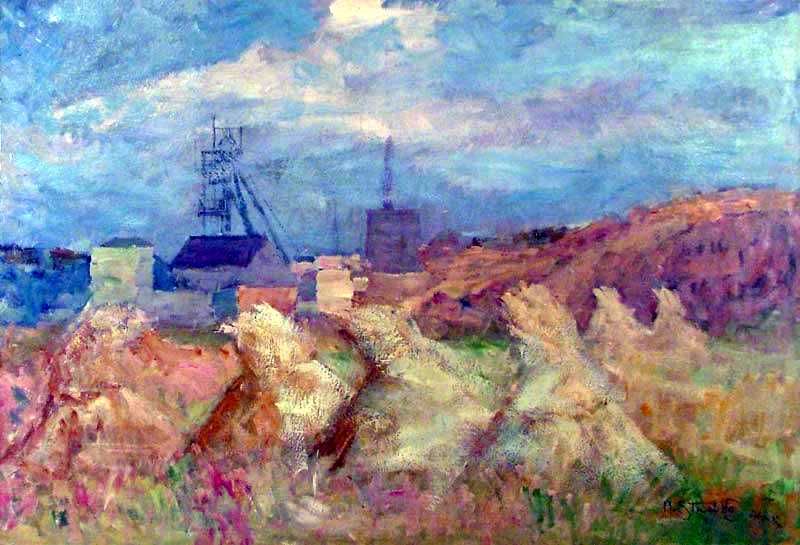 Pejzaż ze snopkami i szybem kopalnianym
