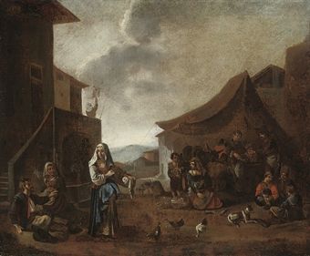 Peasants in a village square