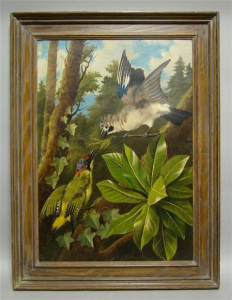 EUROPEAN JAY AND A GREEN WOODPECKER