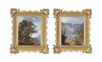 | A huntsman at a mountainous torrent (possibly Tivoli); and A huntsman on a riverside track | |