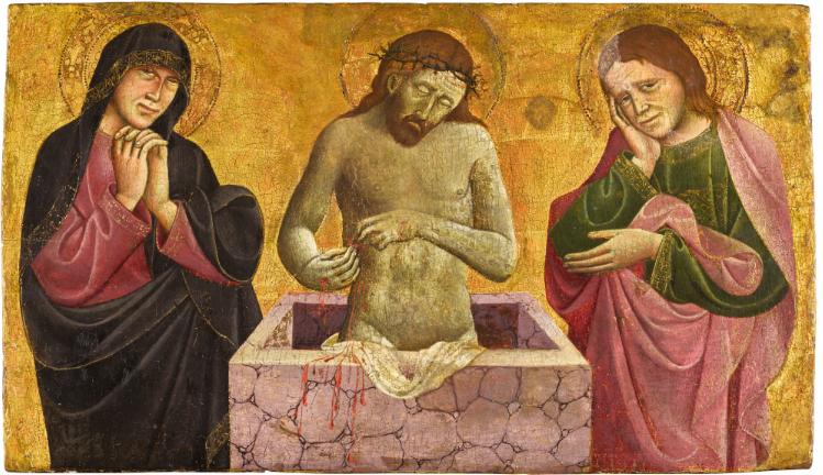 | CHRIST AS THE MAN OF SORROWS, FLANKED BY THE MADONNA AND SAINT JOHN THE EVANGELIST | |