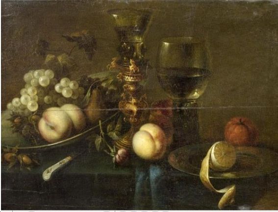 Still life with fruits, rummer and goblet.