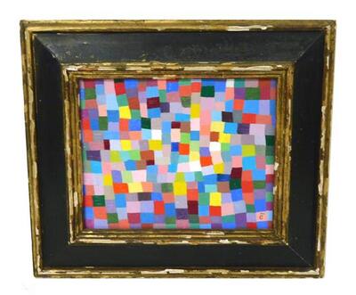 abstract geometric composition depicting stacks of polychrome rectangles, monogrammed "MG" LR, black and gilt frame with minor losses and damages, ss: 7 1/2" h. x 9 1/2" w. [Gloeckner was born in Dresden, Germany but moved to NY after WWII. The artis | |