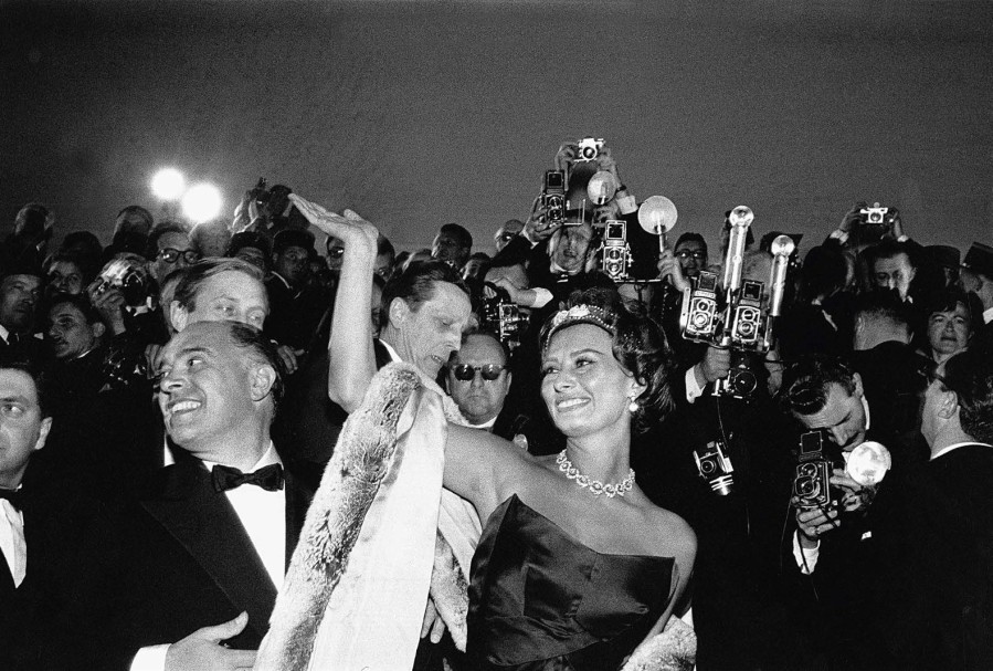 | Lors du 11e Festival de Cannes, l'arrivée de Sophia Loren, Carlo Ponti etRobert Favre Le Bret, délégué général du Festival. 3 av | |