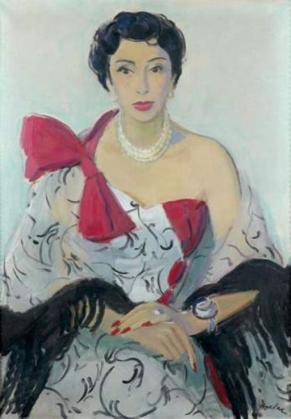 Élégante au noeud rose