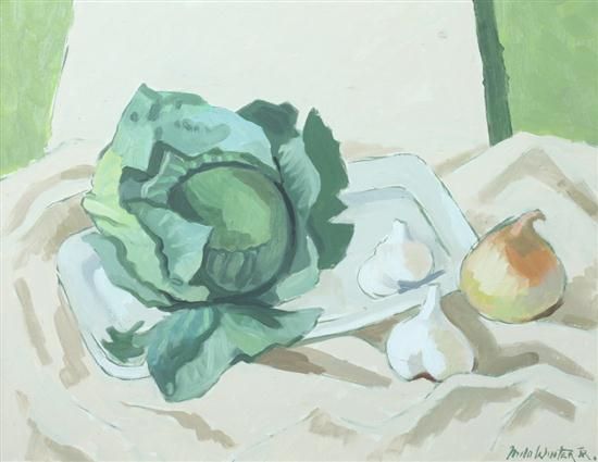 STILL LIFE WITH ONIONS, LETTUCE AND GARLIC