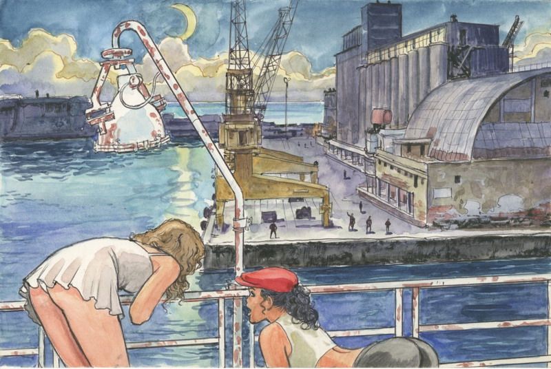 Illustration d'un port illuminé par un beau clair de la Lune…