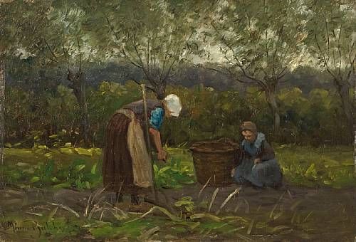 Two women digging potatoes