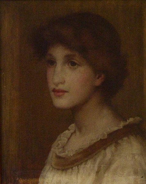 | Portrait of a young woman, head and shoulders, wearing a white dress with velvet collar | |