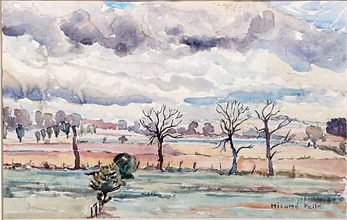 landscape 'Harvest over Fields looking to Whittenham Clump 1949'