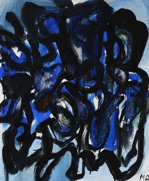 Abstract composition in blue and black