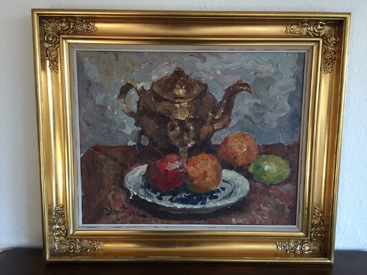 Still life with a teapot and fruits