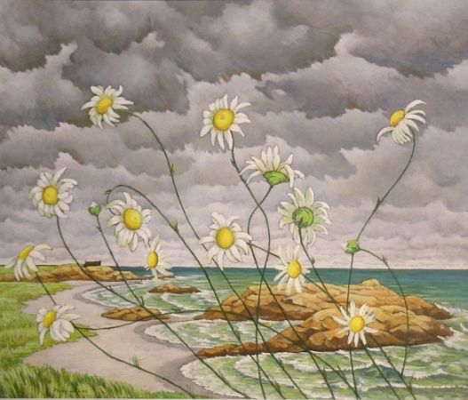 Beach Scene with Daisies