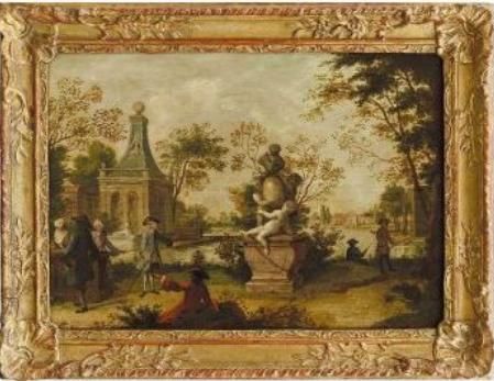 Höfische Gesellschaft und Angler im Park