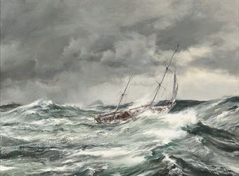 Gipsy Moth (IV) in heavy weather off Cape Horn, running under a storm trysail