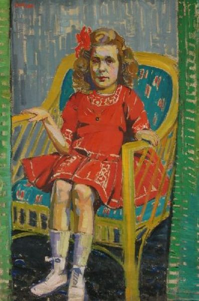 Sitzendes Mädchen im roten Kleid. Nach 1910.