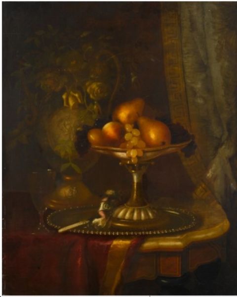 STILL LIFE WITH TAZZA, FRUIT AND ROSES.
