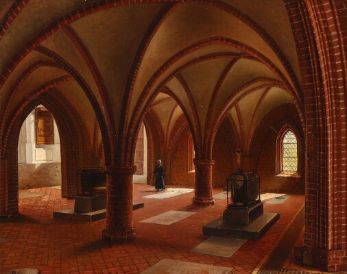 Interior from the crypt of the Cathedral, St. Knuds, in Odense, Funen