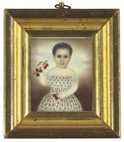 | A MINIATURE PORTRAIT OF A YOUNG GIRL HOLDING CHERRIES | |
