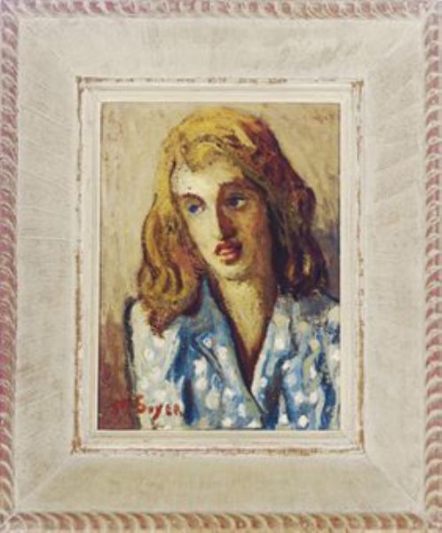 | Portrait of a girl wearing a blue and white polka-dotted dress | |