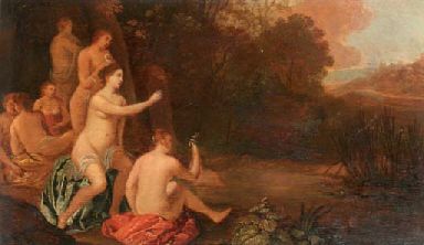 Nymphs bathing in a landscape