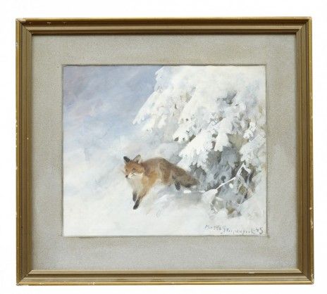 Räv i vinterlandskap.