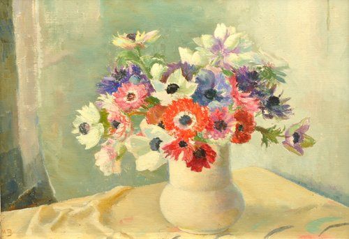 Still life of anemones initialled